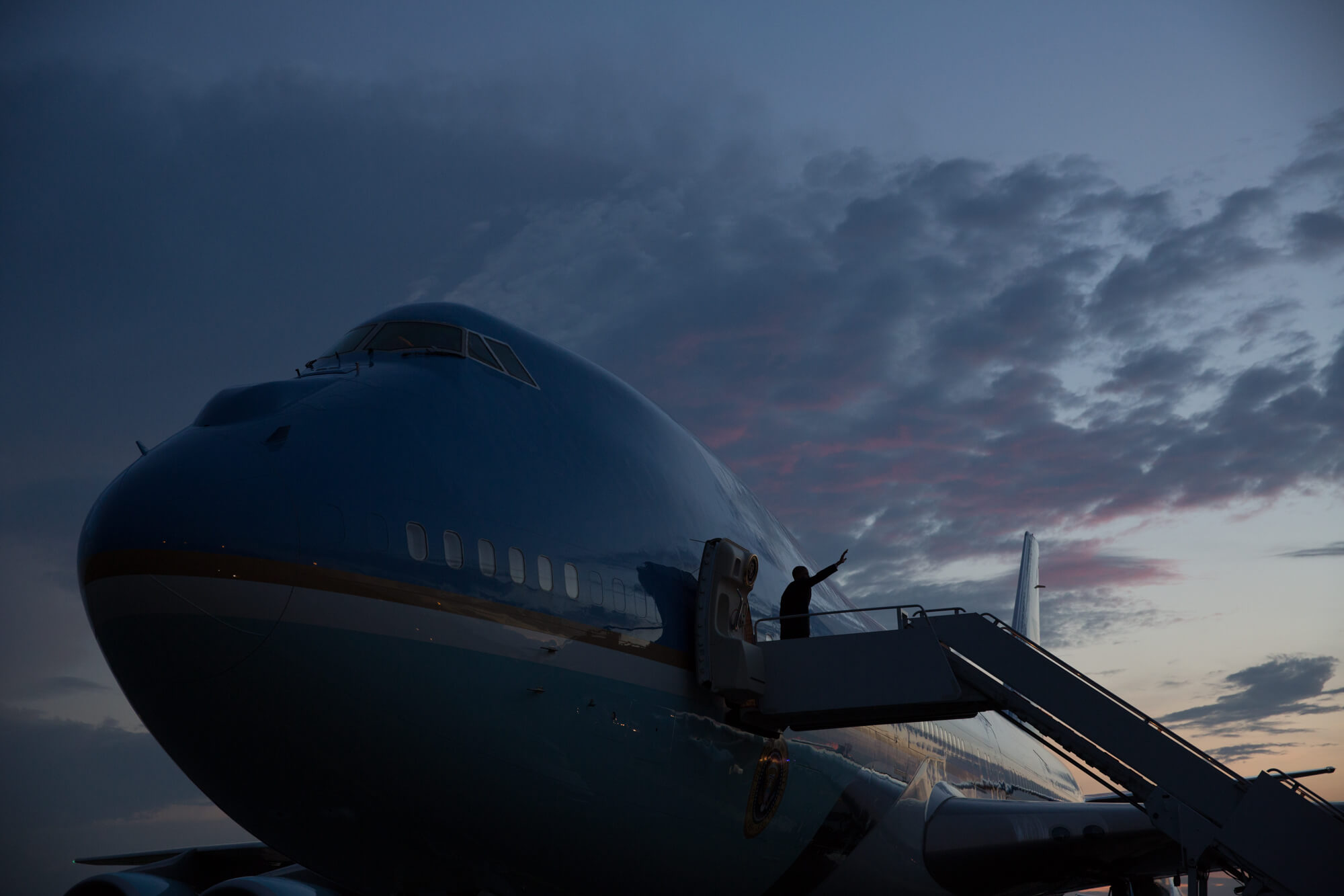 President Barack Obama, accompanied by Secret Service, walks across the tarmac to greet people after arriving at North Carolina Air National Guard Base in Charlotte, North Carolina, March 7, 2012. (Official White House Photo by Lawrence Jackson)